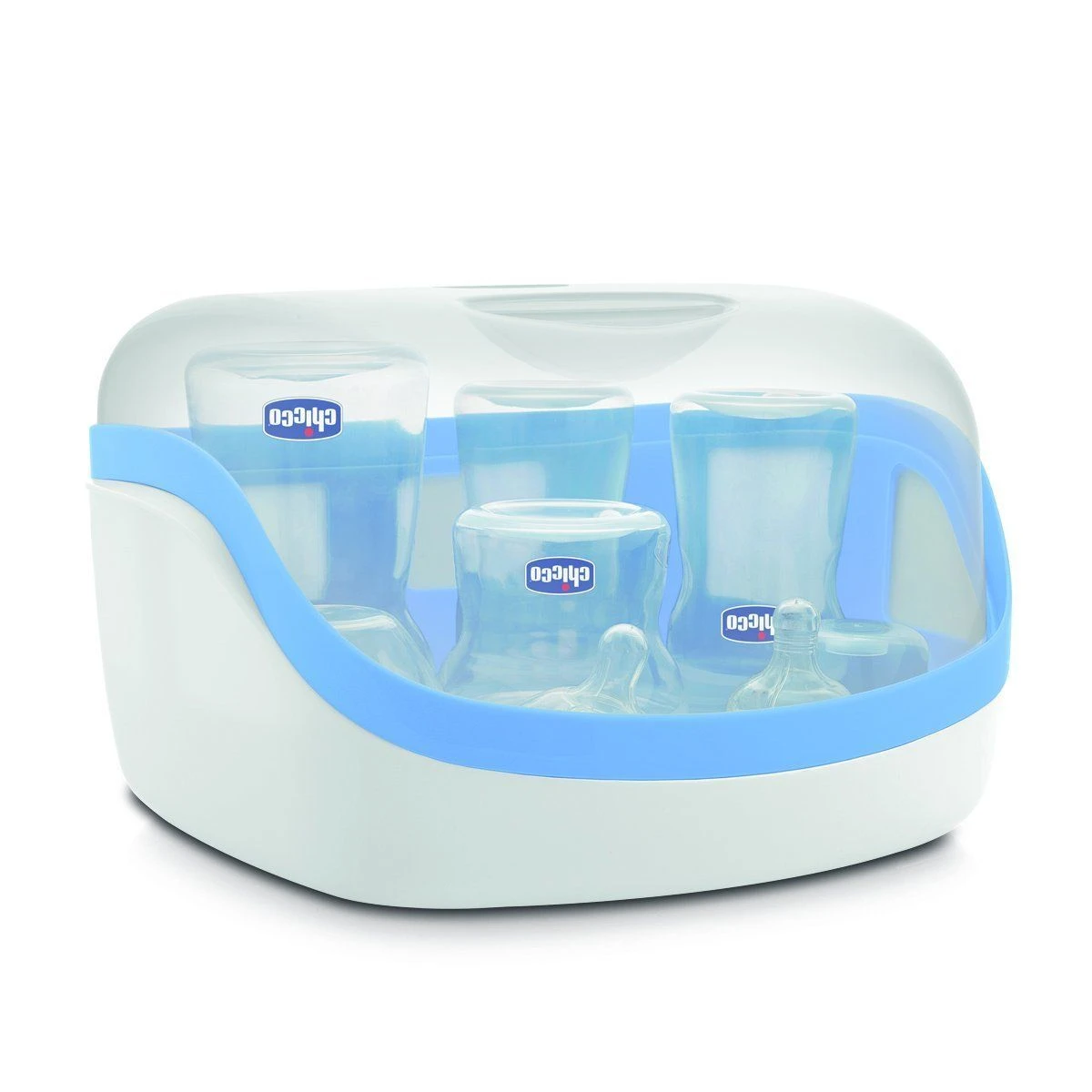 Chicco 658465 Sterilizzatore Microonde. STERILIZZATORE MICROONDE CHICCO. Sterilizza fino a 5 biberon della linea Chicco Benessere o 4 della linea Step Up. Compatibile con tutti i forni a microonde e permette la sterilizzazione delle bottiglie in soli 5 minuti (840 W). Mantiene il contenuto sterilizzato per 24 h