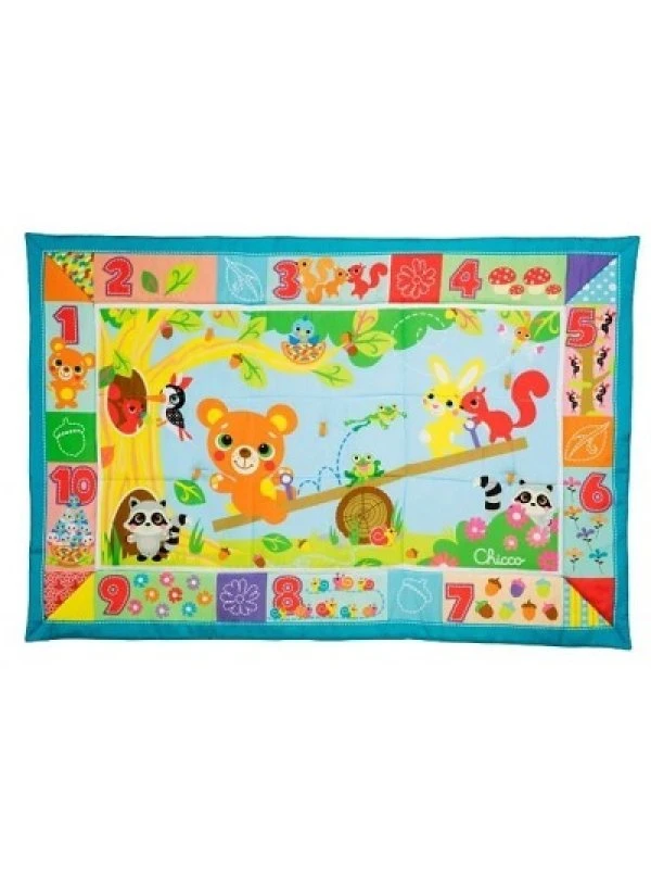Soffice tappeto offre grande più di un metro quadrato. Dotato di 5 anelliposizionati sul Tappeto consentono di agganciare giochi e trillini per personalizzare lasuperficie (giochi non inclusi). Dotato di due laccetti che consentono di chiudere eriporre il tappeto.