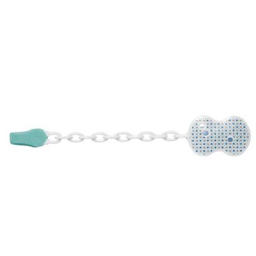 Grazie alla pratica e colorata clip con catenella, il succhietto è sempre pulito e a portata di mano. La clip è facile da agganciare a qualsiasi vestitino del tuo bimbo, sterilizzabile sia a caldo che a freddo e con un pratico gancio morbido.