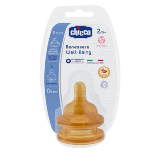 Disponibile in caucciù con una gamma completa di flussi specifici per le progressive fasi di crescita del bambino.